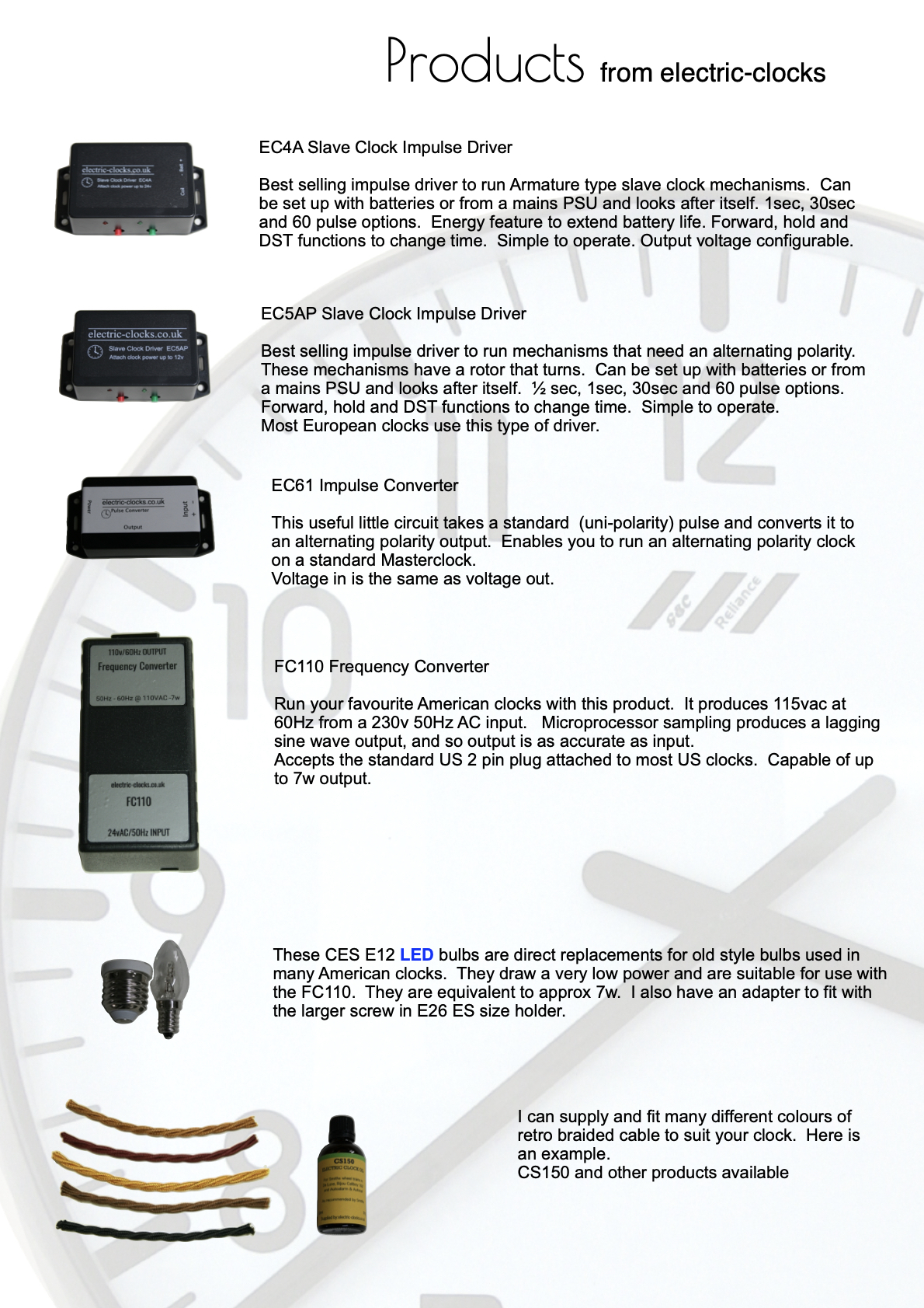 Products —— Repairs —— electric-clocks.co.uk 2 —— Clocks —— contact